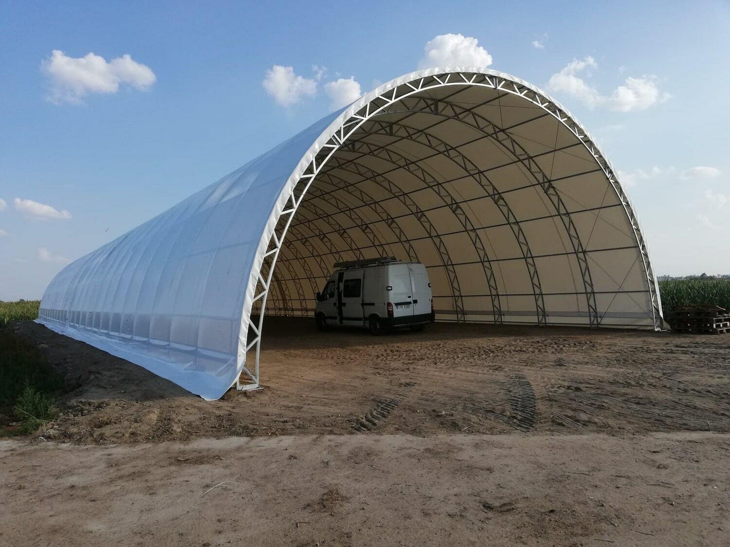 PVC angāra ilgtspējība ir atkarīga no PVC auduma biezuma. Mūsu uzstādīto angāru PVC auduma biezums ir 650g/m2. Angāru kalpošanas laiks svārstās no 10 līdz 25 gadiem, ņemot vērā ekspluatācijas apstākļus.